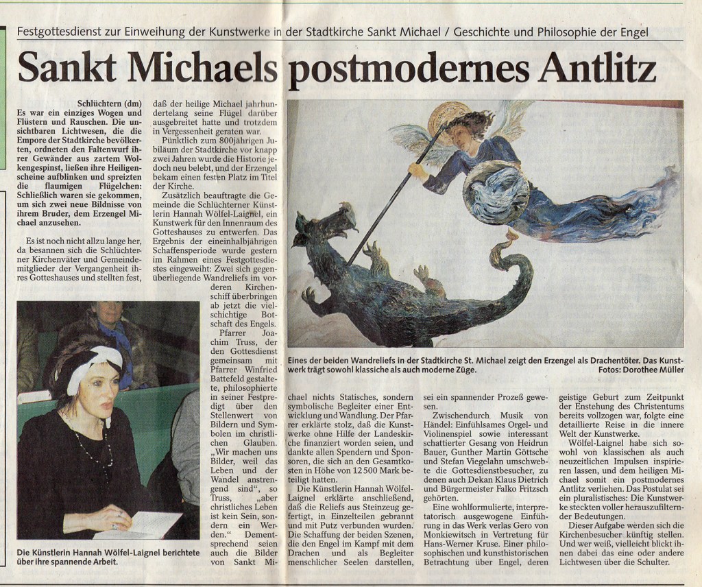 Wand-Reliefs Öffentliche Aufträge Auftragsarbeit Wandrelief in der St.-Michaelkirche Schlüchtern (1998): Teil 1 Michael tötet den Drachen Auftragsarbeit Wandrelief in der St.-Michaelkirche Schlüchtern (1998): Teil 2 Michael begleitet die Seelen Details Michael Kinzigtal Nachrichten 16. März 1998 Teilen mit: Auf X teilen (Wird in neuem Fenster geöffnet) X Auf Facebook teilen (Wird in neuem Fenster geöffnet) Facebook Gefällt mir Wird geladen …